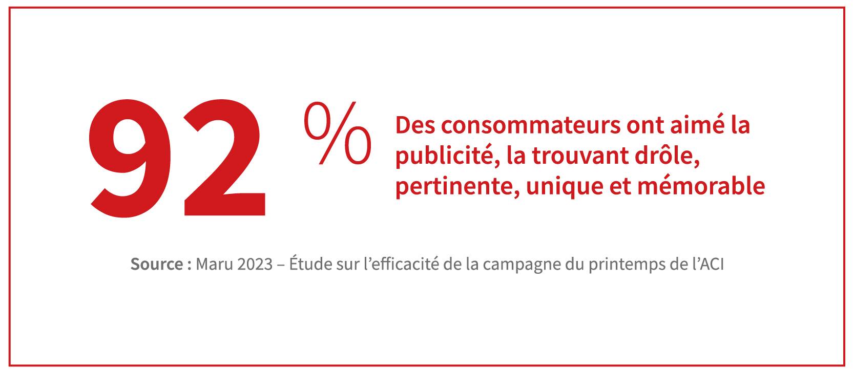 Cet automne, la stratégie médiatique de l’ACI a été modifiée pour cibler les canaux médiatiques les plus efficaces de la campagne, multiplier les annonces sur les réseaux sociaux et les publicités à l’extérieur, et continuer à diffuser l’annonce de 30 secondes « Larger than Life » sur les chaînes de vidéo et de diffusion en continu en ligne.