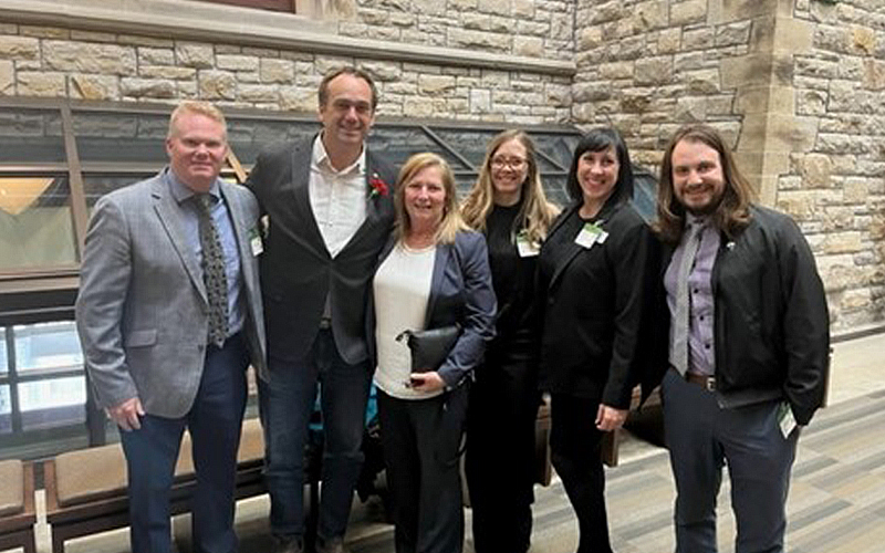 From left to right, Nate Lollar (KAREA), MP Mark Gerretsen, Colleen Emmerson (KAREA), Kiara Vallier (KAREA), Mary Ambrose (KAREA), and Matt Thibault (KAREA).